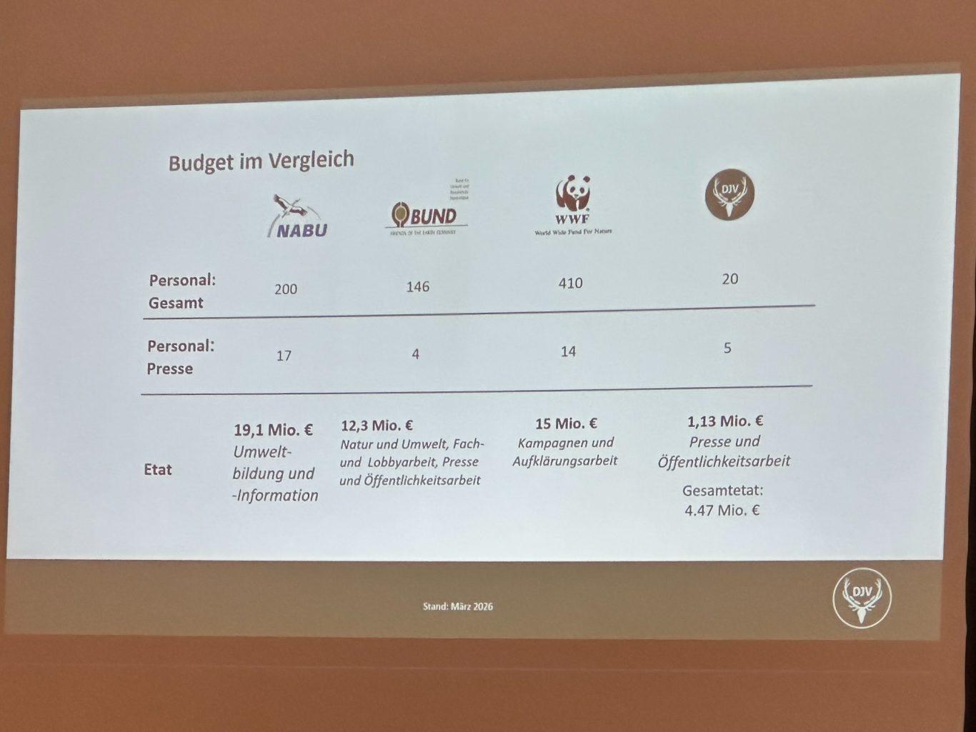 Auf den Fotos zu sehen: Ministerbesuch (v. Breitenbruch) und Gelder für Öffentlichkeitsarbeit der Jagd im Vergleich zu anderen Organisationen